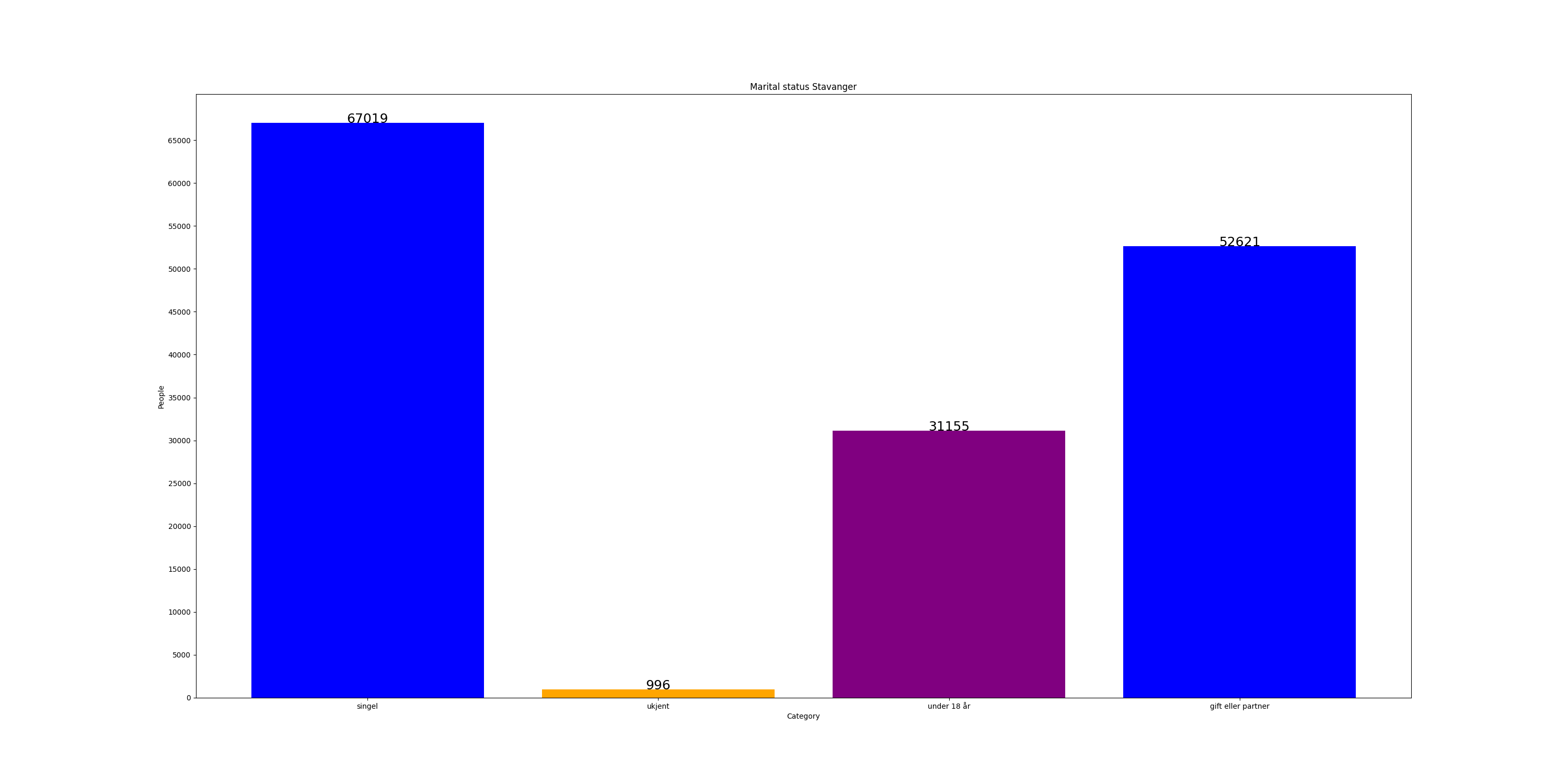 EN: The dataset contains data on the number of people with civil status single, married or partner or in Stavanger (Key/Name group = Category Value, number = Statistics Value), in PNG format. Updated daily.